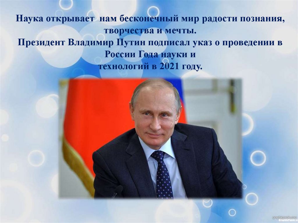 Наука открывает нам бесконечный мир радости познания,творчества и мечты.
