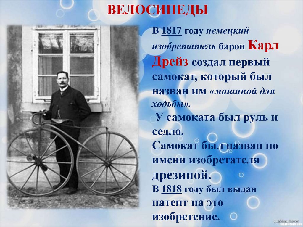 ВЕЛОСИПЕДЫВ 1817 году немецкий