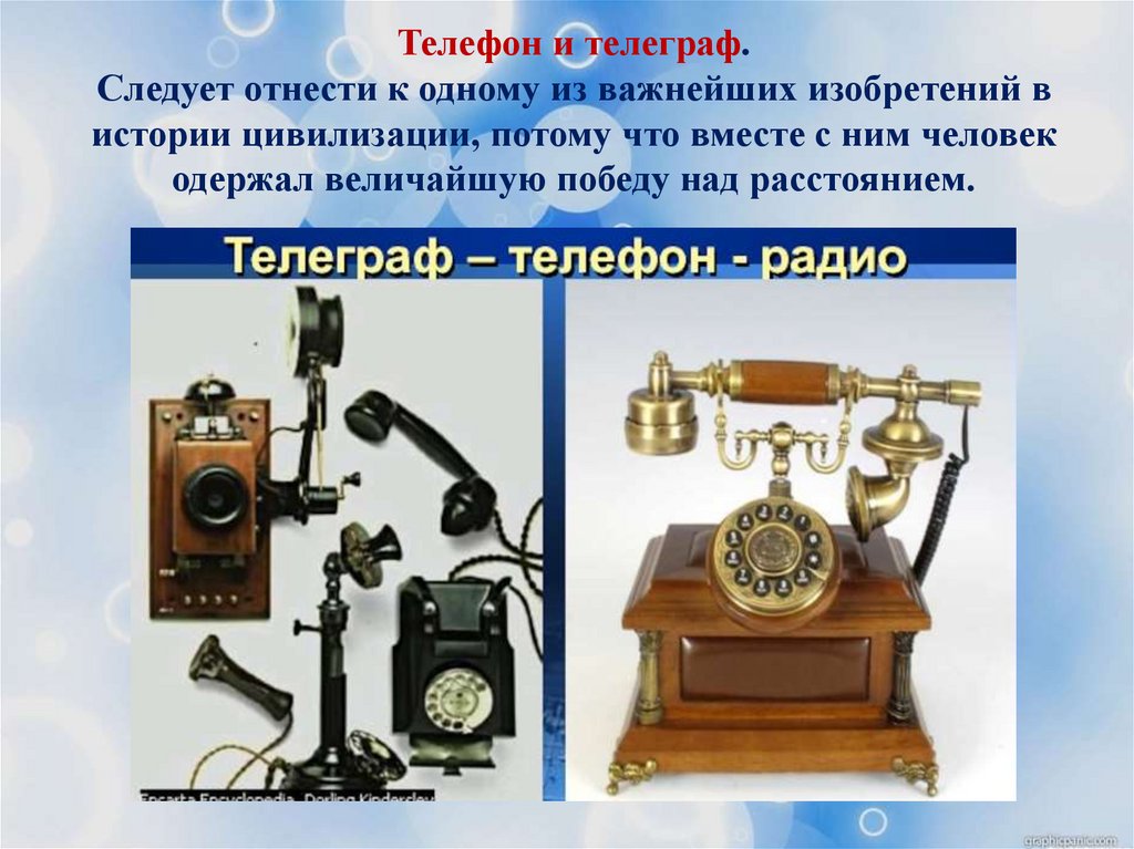 Телефон и телеграф.Следует отнести к одному из важнейших изобретений в