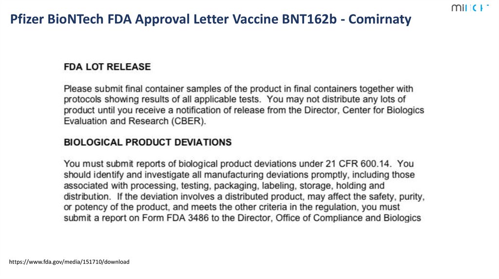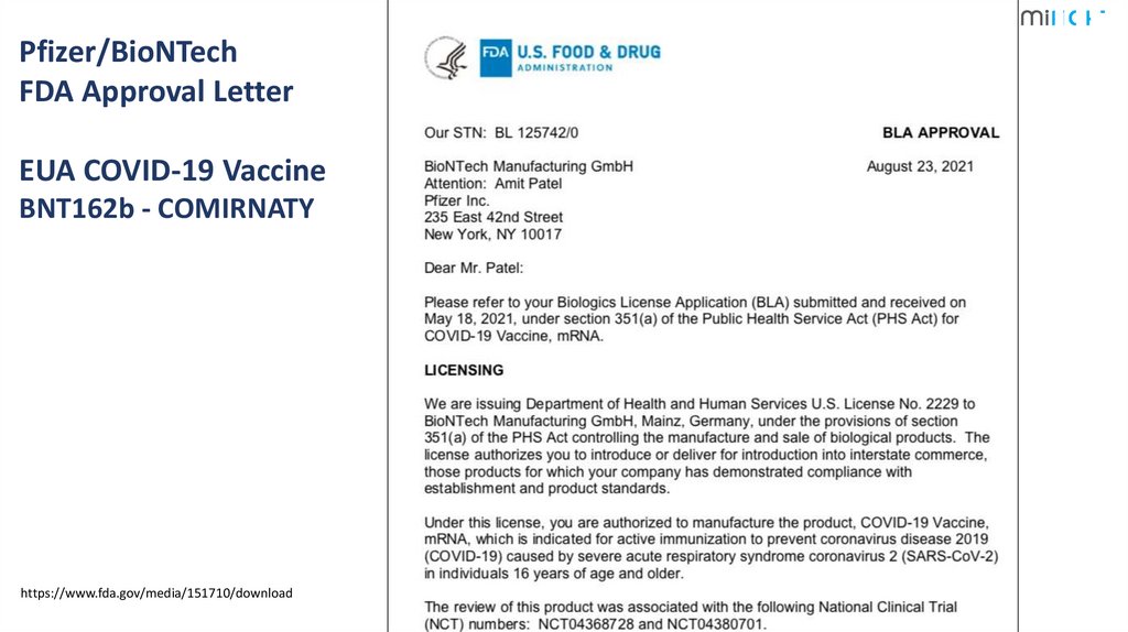 Pfizer BioNTech FDA Approval Letter Vaccine BNT162b - COMIRNATYhttps://www.fda.gov/media/151710/download