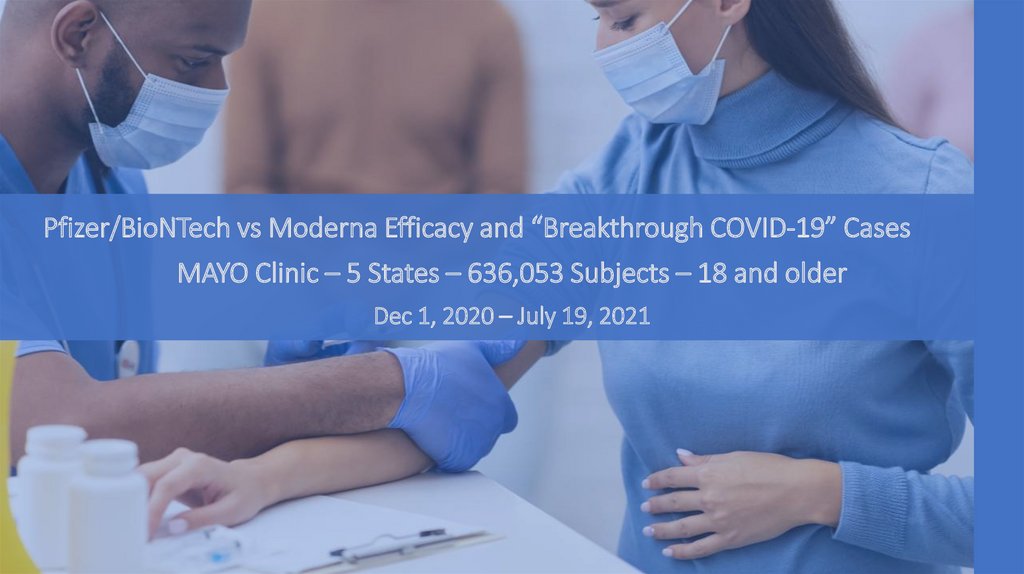 Pfizer/BioNTech vs Moderna Efficacy and “Breakthrough COVID-19” CasesMAYO Clinic – 5 States – 636,053 Subjects – 18 and older