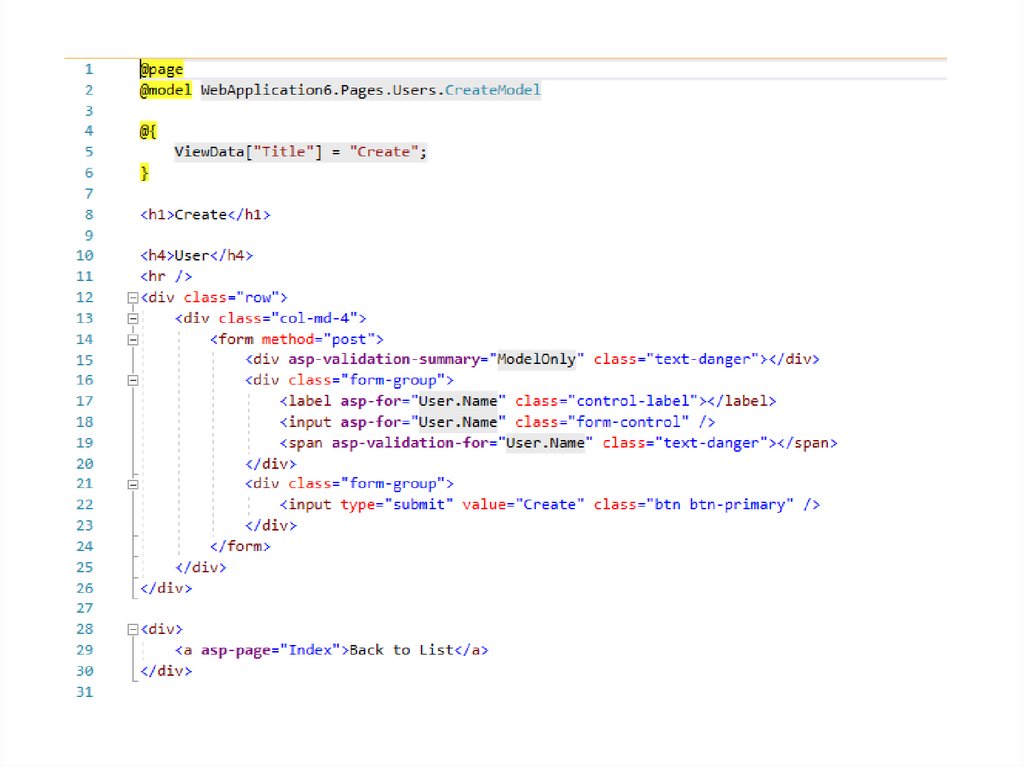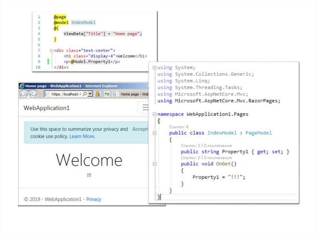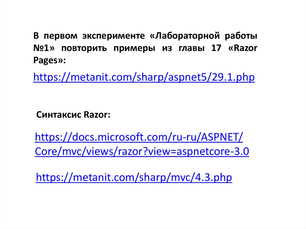 В первом эксперименте «Лабораторной работы№1» повторить примеры из главы 17 «Razor
