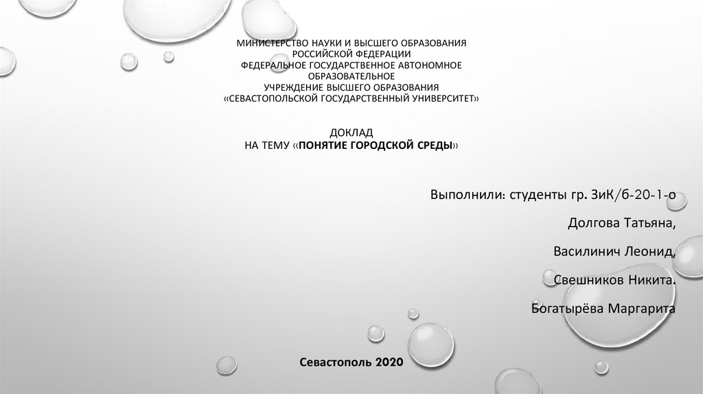 НА ТЕМУ «ПОНЯТИЕ ГОРОДСКОЙ СРЕДЫ»