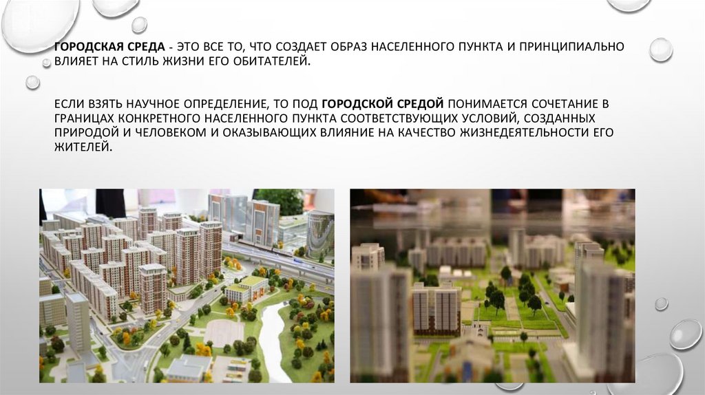 ГОРОДСКАЯ СРЕДА - ЭТО ВСЕ ТО, ЧТО СОЗДАЕТ ОБРАЗ НАСЕЛЕННОГО ПУНКТА И ПРИНЦИПИАЛЬНОВЛИЯЕТ НА СТИЛЬ ЖИЗНИ ЕГО ОБИТАТЕЛЕЙ.