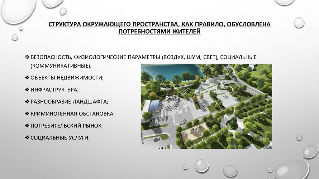 СТРУКТУРА ОКРУЖАЮЩЕГО ПРОСТРАНСТВА, КАК ПРАВИЛО, ОБУСЛОВЛЕНАПОТРЕБНОСТЯМИ ЖИТЕЛЕЙ