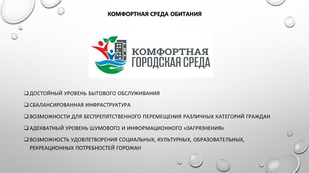 КОМФОРТНАЯ СРЕДА ОБИТАНИЯ❑ ДОСТОЙНЫЙ УРОВЕНЬ БЫТОВОГО ОБСЛУЖИВАНИЯ