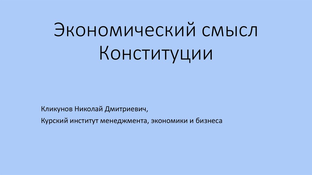Экономический смысл Конституции