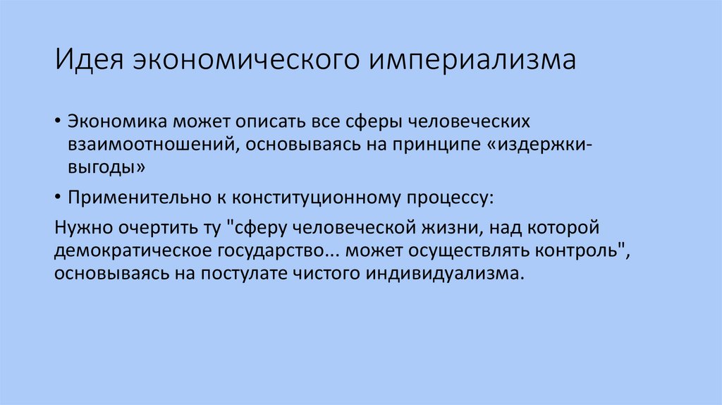 Идея экономического империализма• Экономика может описать все сферы человеческих