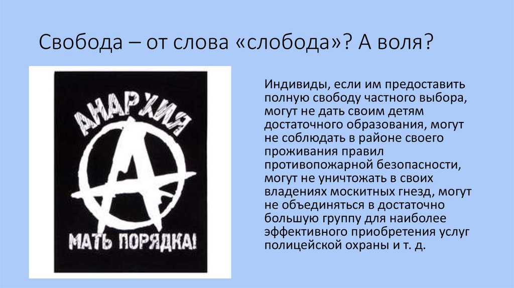 Свобода – от слова «слобода»? А воля?Индивиды, если им предоставить
