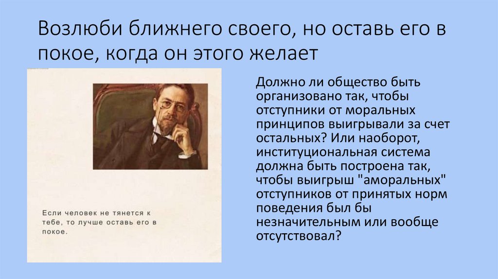 Возлюби ближнего своего, но оставь его впокое, когда он этого желает