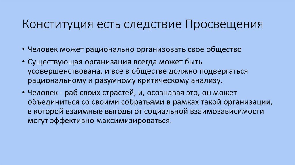 Конституция есть следствие Просвещения• Человек может рационально организовать свое общество