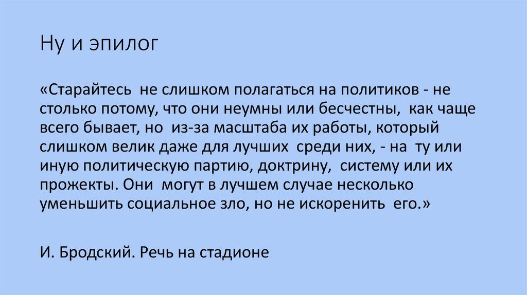 Ну и эпилог«Старайтесь не слишком полагаться на политиков - не