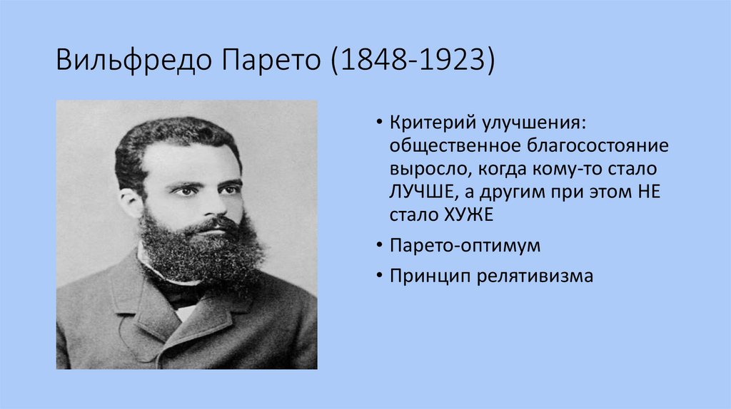 Вильфредо Парето (1848-1923)• Критерий улучшения:
