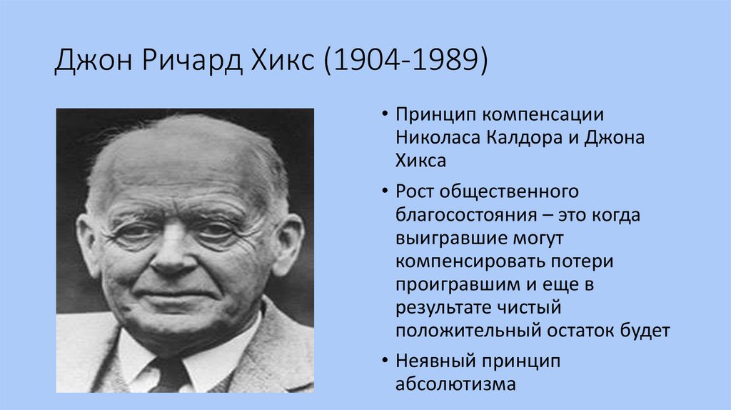 Джон Ричард Хикс (1904-1989)• Принцип компенсации