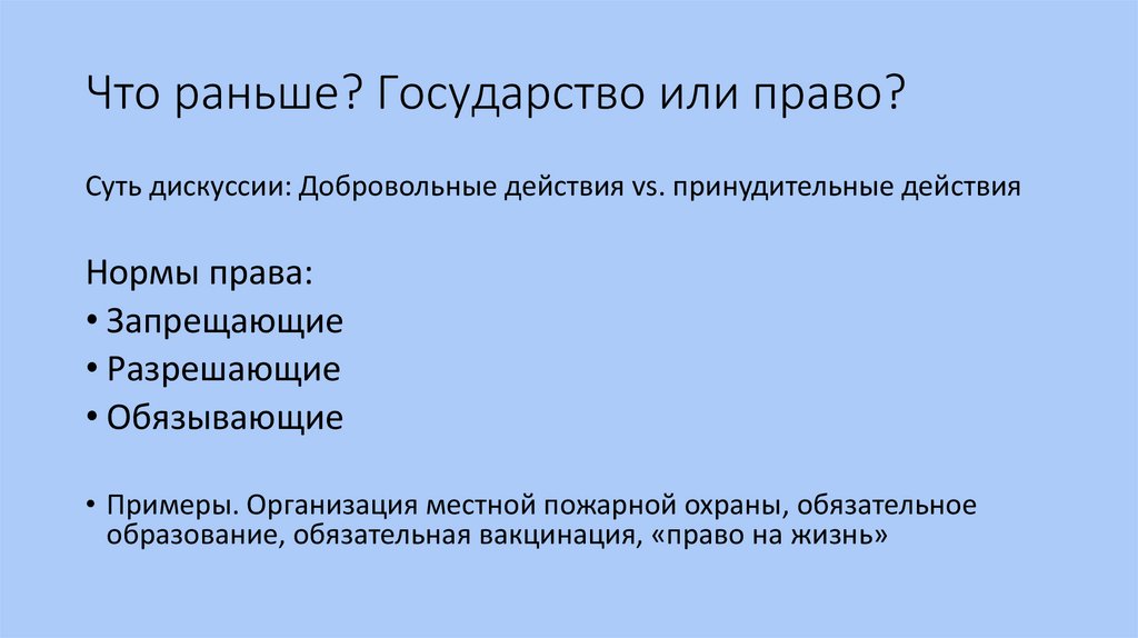 Что раньше? Государство или право?Суть дискуссии: Добровольные действия vs. принудительные действия