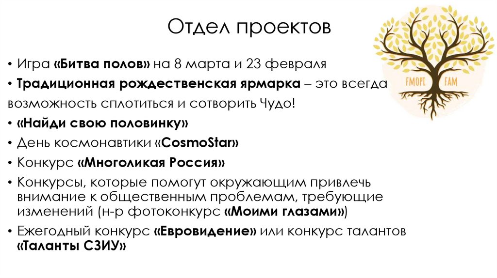 Отдел проектов• Игра «Битва полов» на 8 марта и 23 февраля