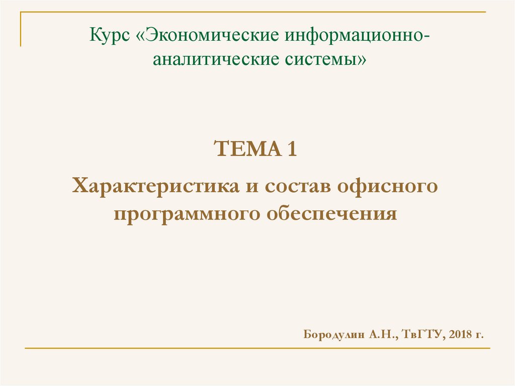 Курс «Экономические информационноаналитические системы»ТЕМА 1