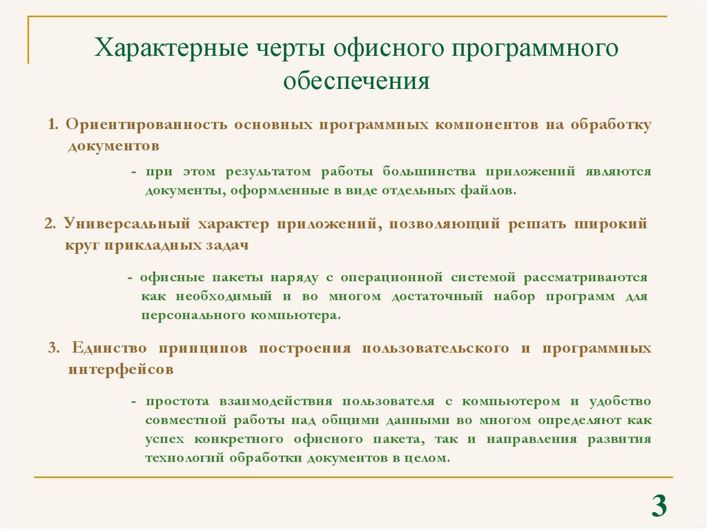 Характерные черты офисного программногообеспечения