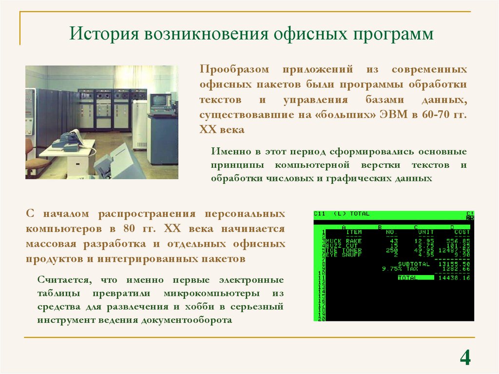 История возникновения офисных программПрообразом приложений из современных