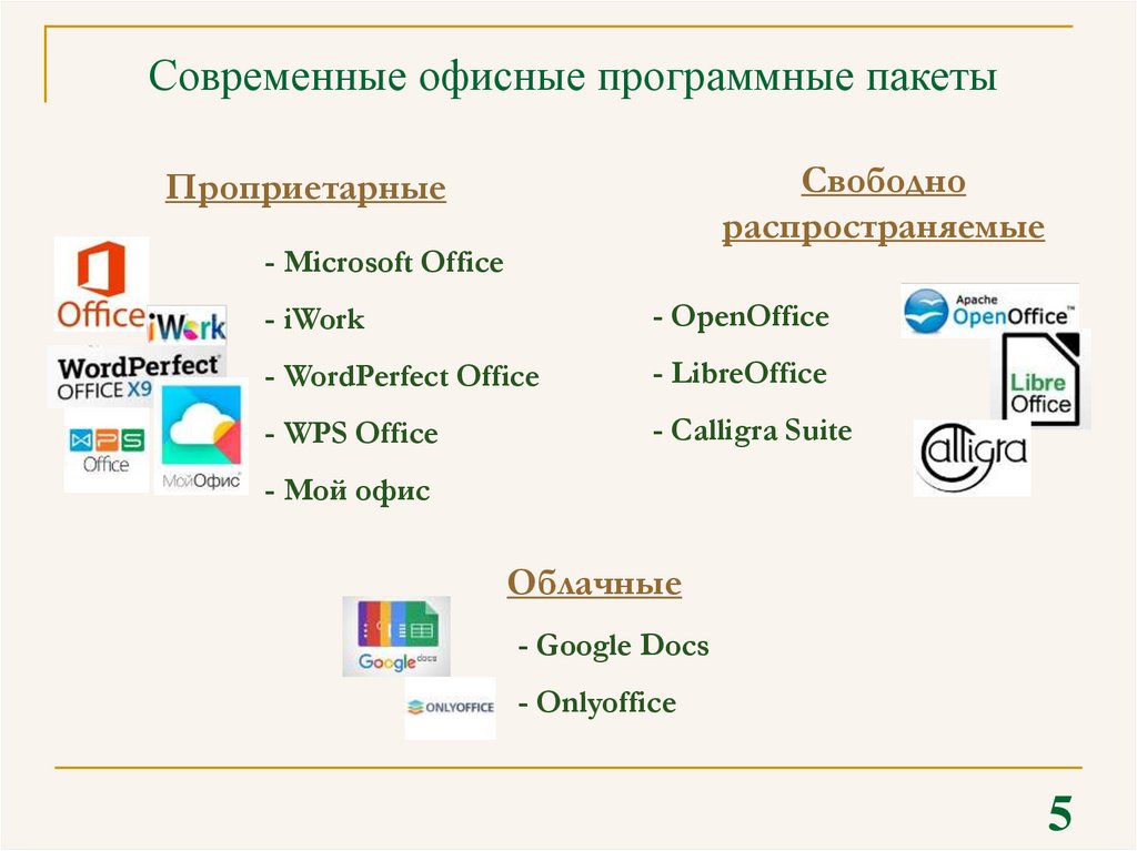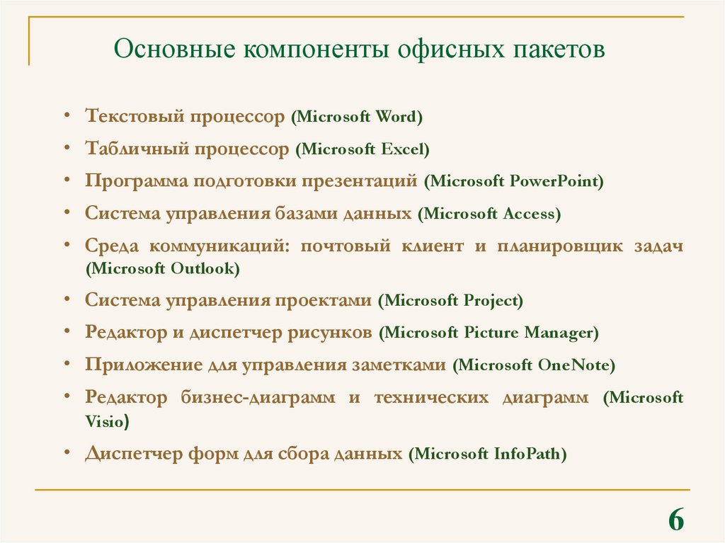 - офисные пакеты наряду с операционной системой рассматриваются