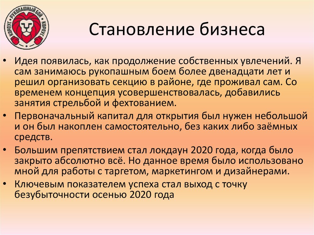 Становление бизнеса• Идея появилась, как продолжение собственных увлечений. Я