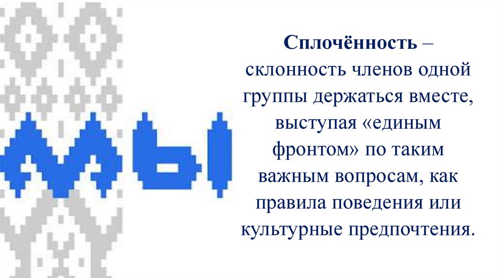 Сплочённость –склонность членов одной