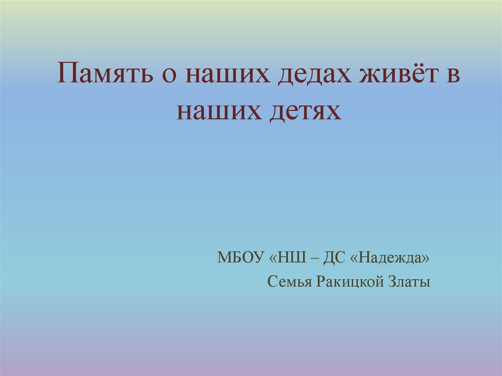 Семья Ракитской Златы. Память о наших дедах живёт в наших детях