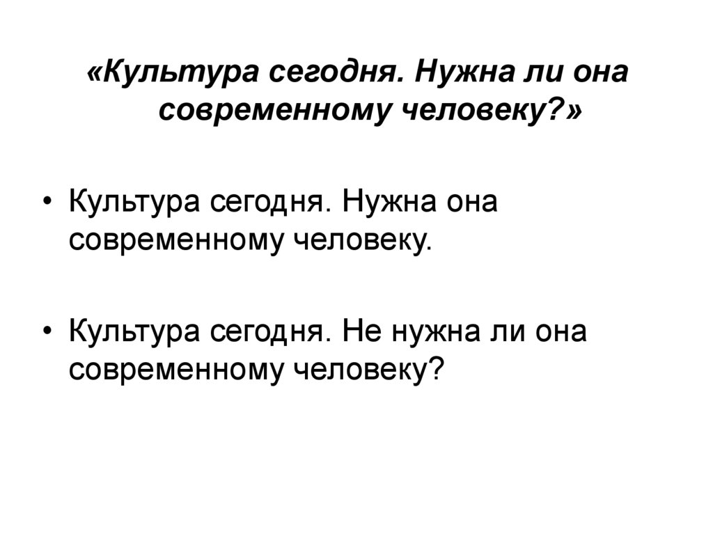 «Культура сегодня. Нужна ли онасовременному человеку?»