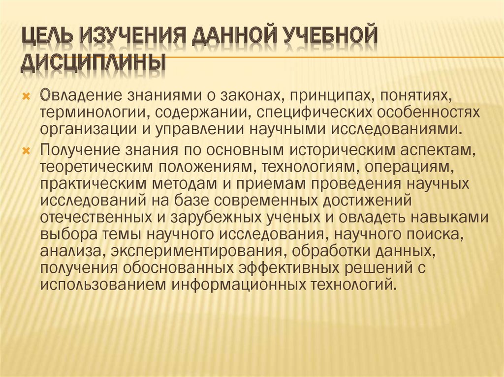 ЦЕЛЬ ИЗУЧЕНИЯ ДАННОЙ УЧЕБНОЙДИСЦИПЛИНЫ
