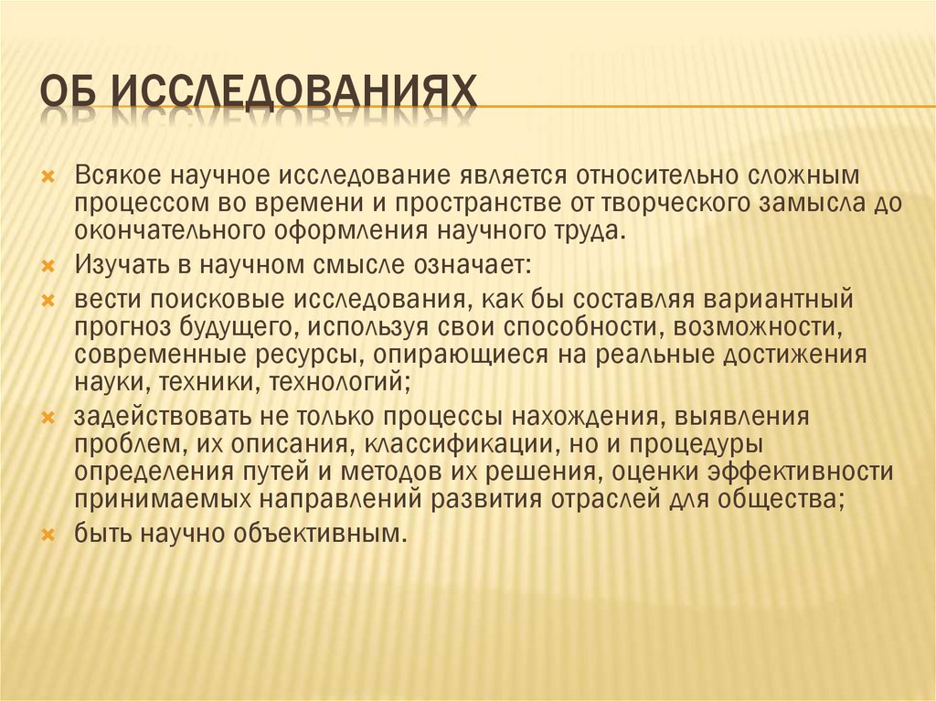ОБ ИССЛЕДОВАНИЯХВсякое научное исследование является относительно сложным