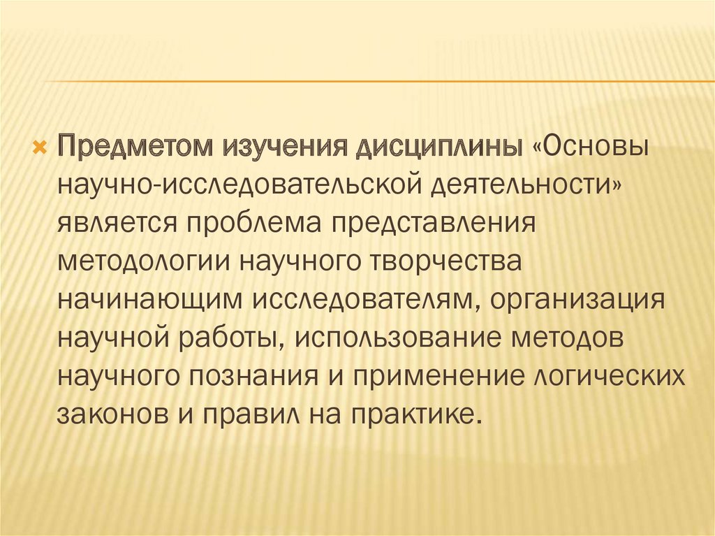 Предметом изучения дисциплины «Основынаучно-исследовательской деятельности»