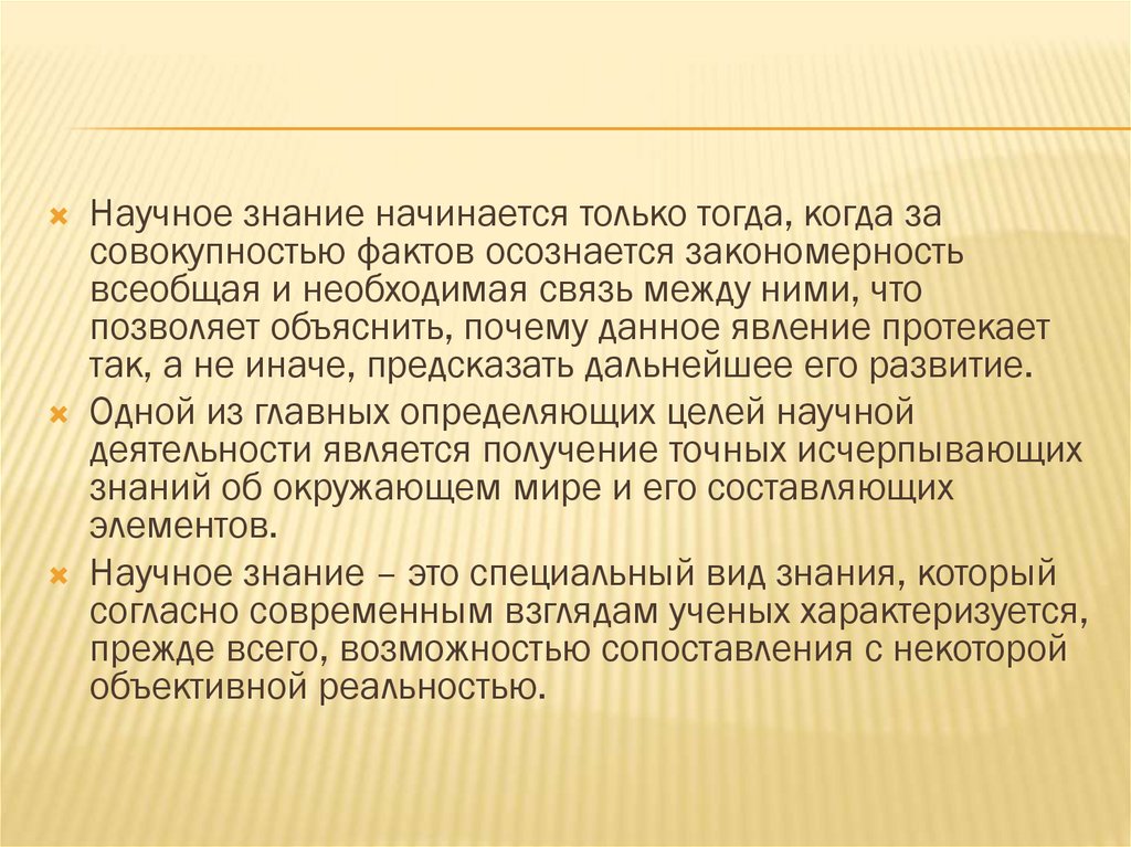 Научное знание начинается только тогда, когда засовокупностью фактов осознается закономерность