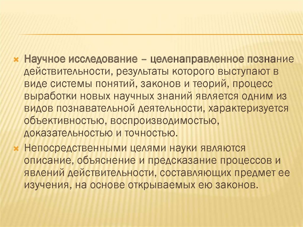 Научное исследование – целенаправленное познаниедействительности, результаты которого выступают в