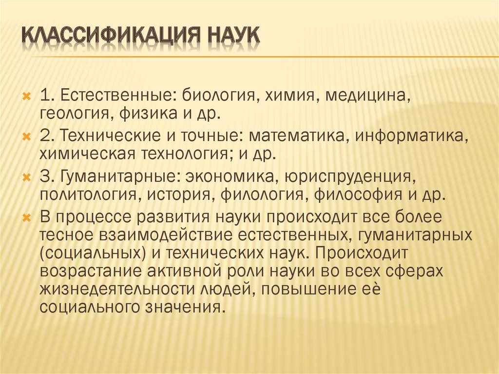 КЛАССИФИКАЦИЯ НАУК1. Естественные: биология, химия, медицина,