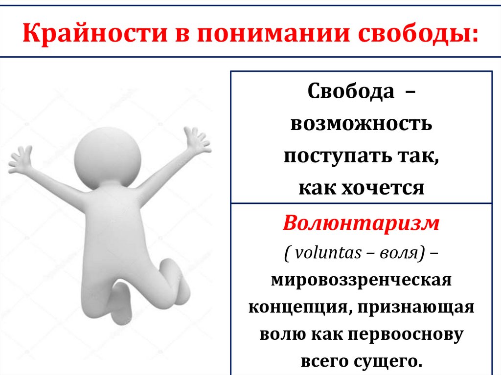 Крайности в понимании свободы:Свобода –