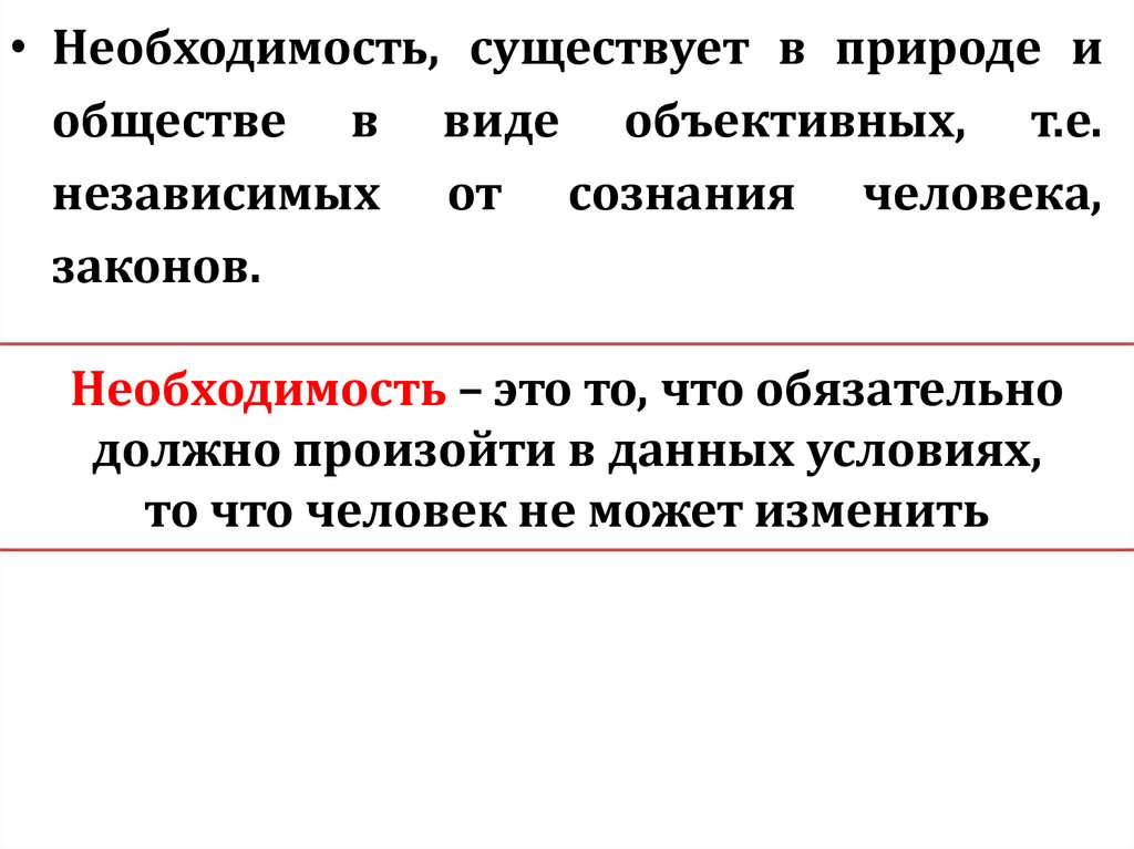• Необходимость, существует в природе иобществе в виде объективных, т.е.