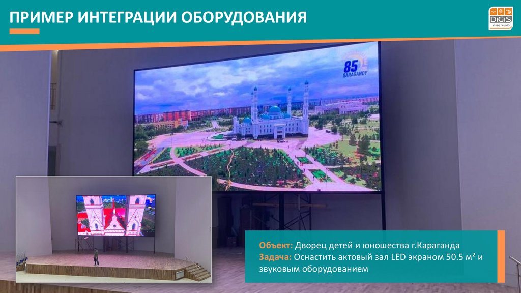 Задача: Оснастить актовый зал LED экраном 50.5 м² и
