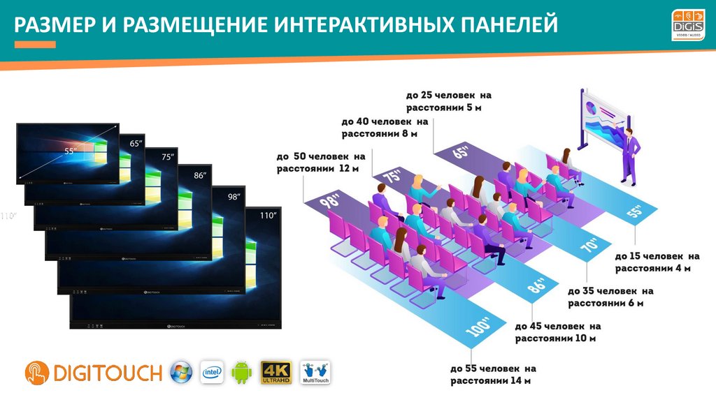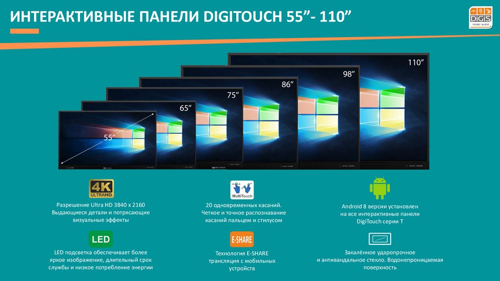ИНТЕРАКТИВНЫЕ ПАНЕЛИ DIGITOUCH 55”- 110”Разрешение Ultra HD 3840 x 2160