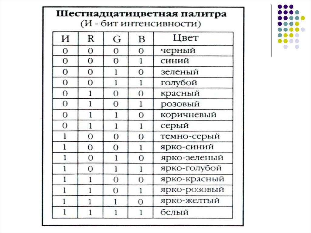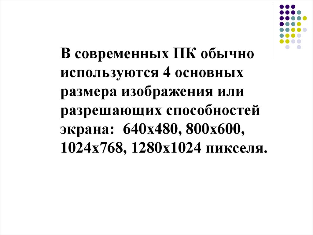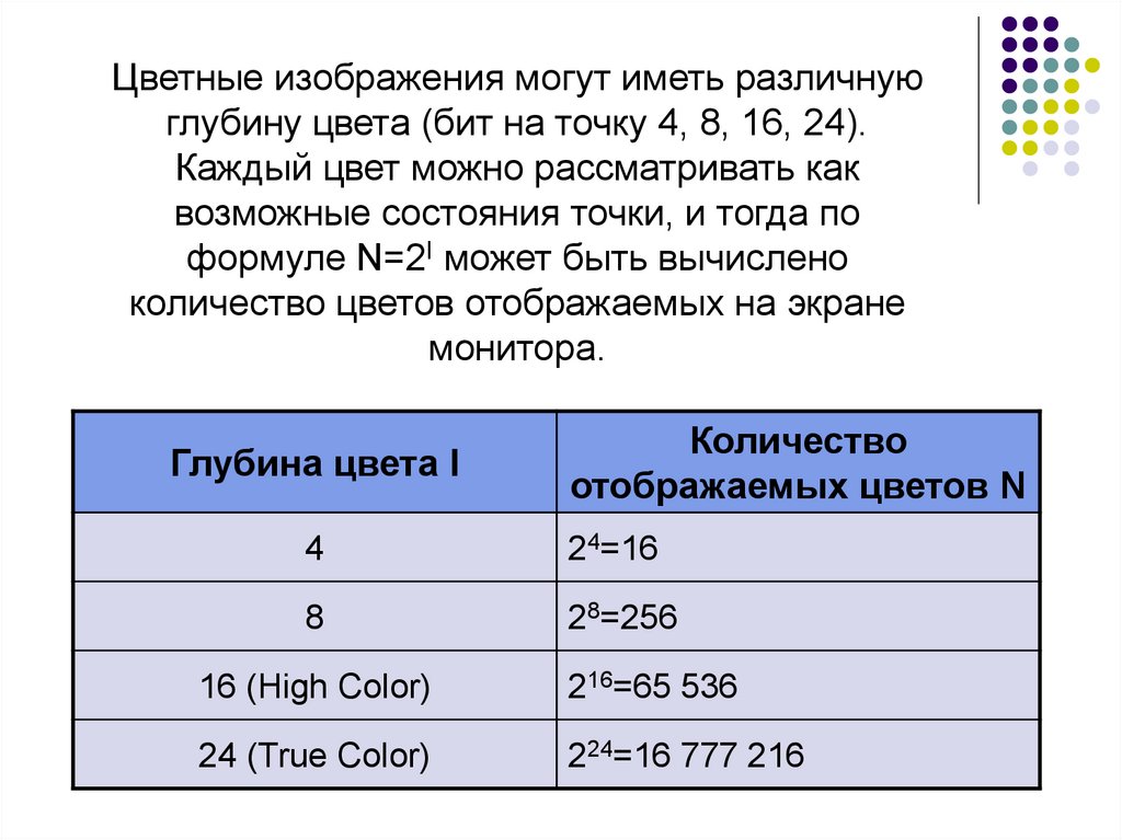 Цветные изображения могут иметь различнуюглубину цвета (бит на точку 4, 8, 16, 24).
