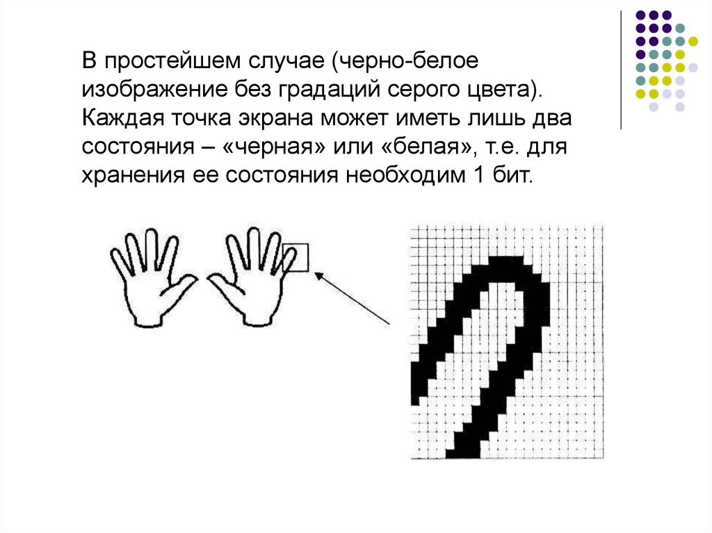 В простейшем случае (черно-белоеизображение без градаций серого цвета).