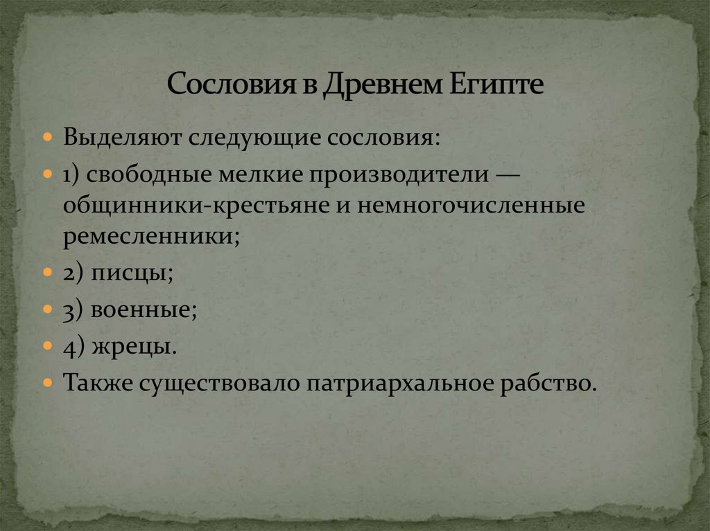 Характерной чертой Древнего Египта было то, чтоправовой статус человека не определялся только