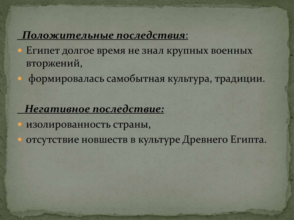 Положительные последствия:Египет долгое время не знал крупных военных