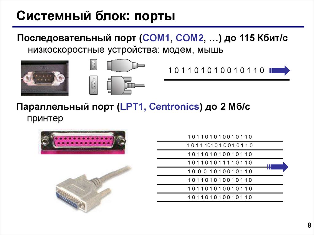 Системный блок: портыПоследовательный порт (COM1, COM2, …) до 115 Кбит/с