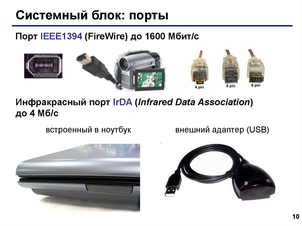 Системный блок: портыПорт IEEE1394 (FireWire) до 1600 Мбит/c