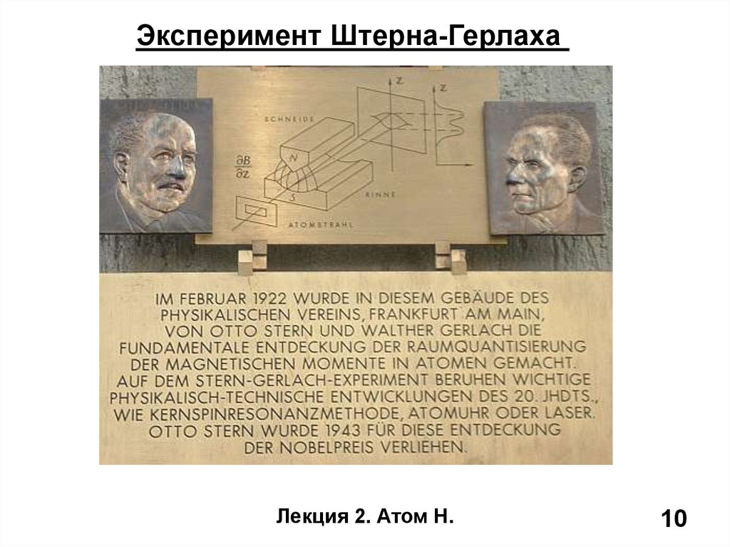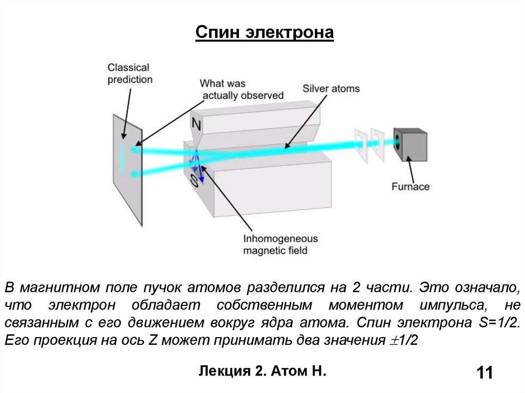 Эксперимент Штерна-ГерлахаЛекция 2. Атом Н.