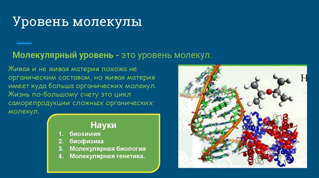 4. Биохимия - наука о молекулярном строении организма; Генетика - наука