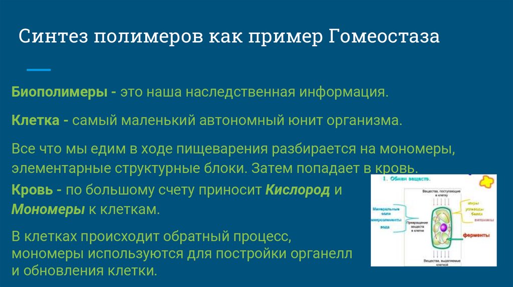 Синтез полимеров как пример ГомеостазаБиополимеры - это наша наследственная информация.