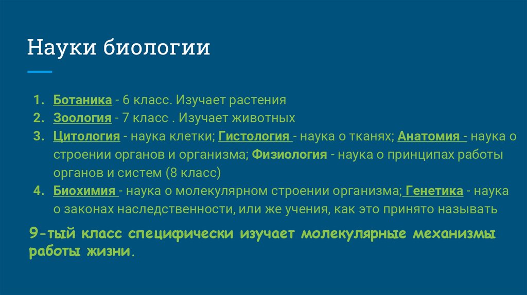 Биология изучает жизнь во всех ее проявлениях. Биология исследует все