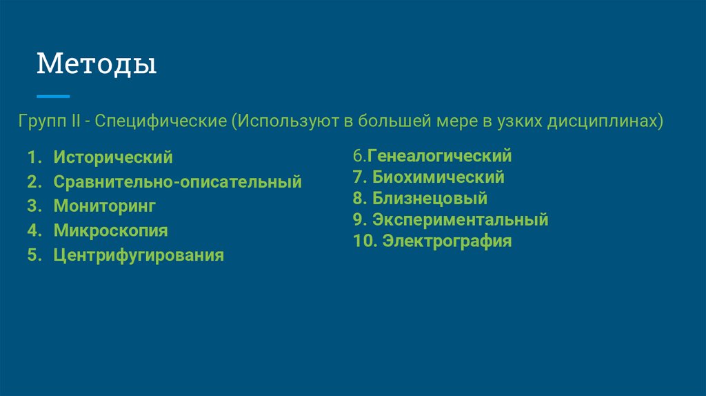 МетодыГрупп II - Специфические (Используют в большей мере в узких дисциплинах)
