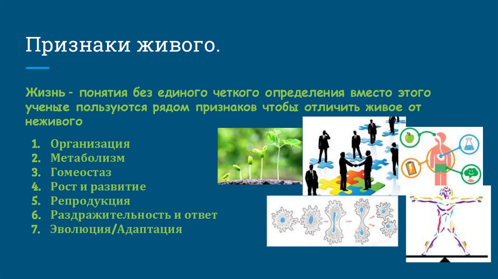 Признаки живого.Жизнь - понятия без единого четкого определения вместо этого